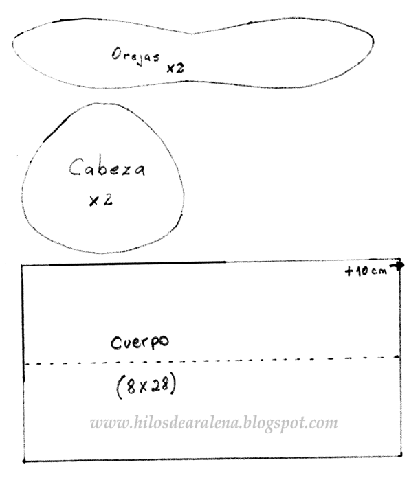 Las orejas ( en este modelo), se cosen en la parte superior.