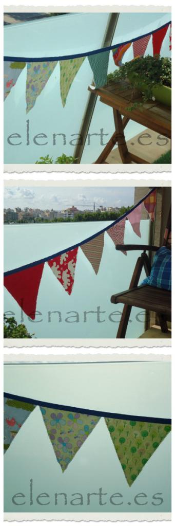 Si quieres una guirnalda duradera lo mejor es que la hagas de tela. En Elenarte han aprovechado todos los pequeños retales sobrantes de otras labores para coser un montón guirnaldas de todos los colores. Mira que bonitas: