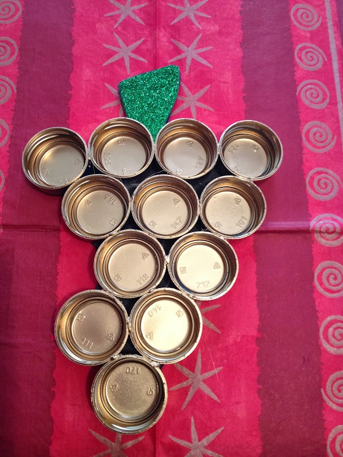 Esta idea tambien la puedes utilizar para decorar la casa en NocheVieja, para ello dejarias los tapones al reves, y pegarias la plantilla por el otro lado: