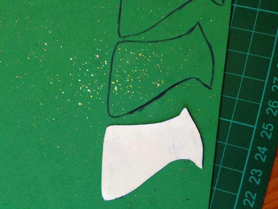 Una vez hecho esto, corta de la plantilla el tallo, y pasalo a goma eva verde con purpurina, y recorta los que necesites.