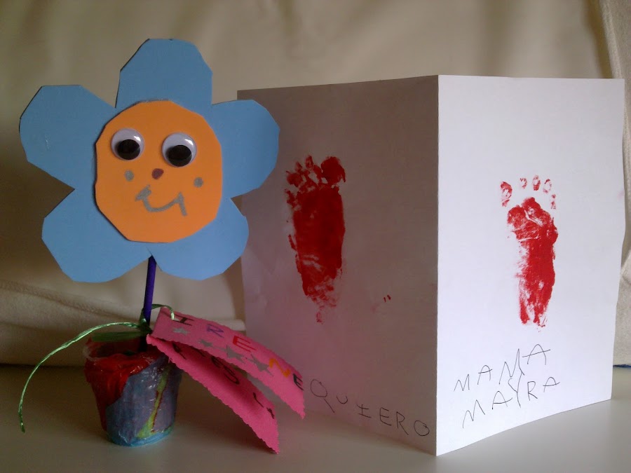 Y ahora os dejo el detallito que me prepararon mis hijas para el dia de la madre. La flor es de la mayor que lo hizo en el cole y las huellas de los pies es de la pequeñaja que lo hicieron en la habitación de al lado mientras yo estaba pintando la camiseta de Snoopy , se rieron un montón porque pasaban delante mia de un lado a otro con el bote de pintura, con la niña llena de pintura roja en los pies y yo ni inmutarme, estaba tan centrada en no cometer errores que no me daba cuenta en el jaleo que estaban montando jajajaja tadavía se me caen las lágrimas cuando me hacen este tipo de regalos y ya son 4 años y me sigo emocionando igual que la primera vez. Para celebrar el dia nos fuimos al Parque de Atracciones y volví a ser niña por un dia montándonos a todo lo que nos dió tiempo, fué genial pero ya mi cuerpo no está para tantos meneos jajajaja. Espero que hayais pasado un dia tan estupendo como yo. Besos.