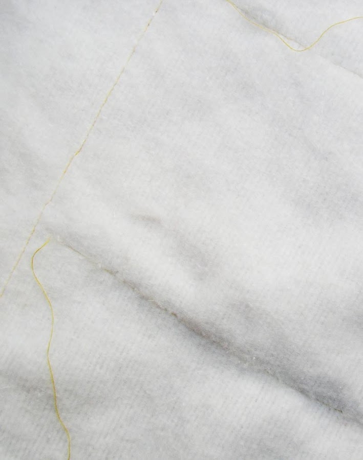 Y para que al lavarlos el muletón no se mueva pasé unas costuras desde la parte de arriba siguiendo las lineas de la tela. En la foto la parte de atrás.