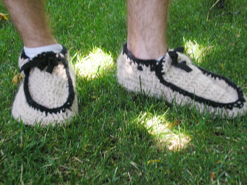 Y os he dicho que esta era una cosa que no debía hacer, por que al novio de mi hija le encantó la idea de las zapatillas de ganchillo y claro la forma de hacerlas para él no era la del blog de Petra y he tenido que hacerle unos mocasines de ganchillo (la flor no me dejó ponérsela).