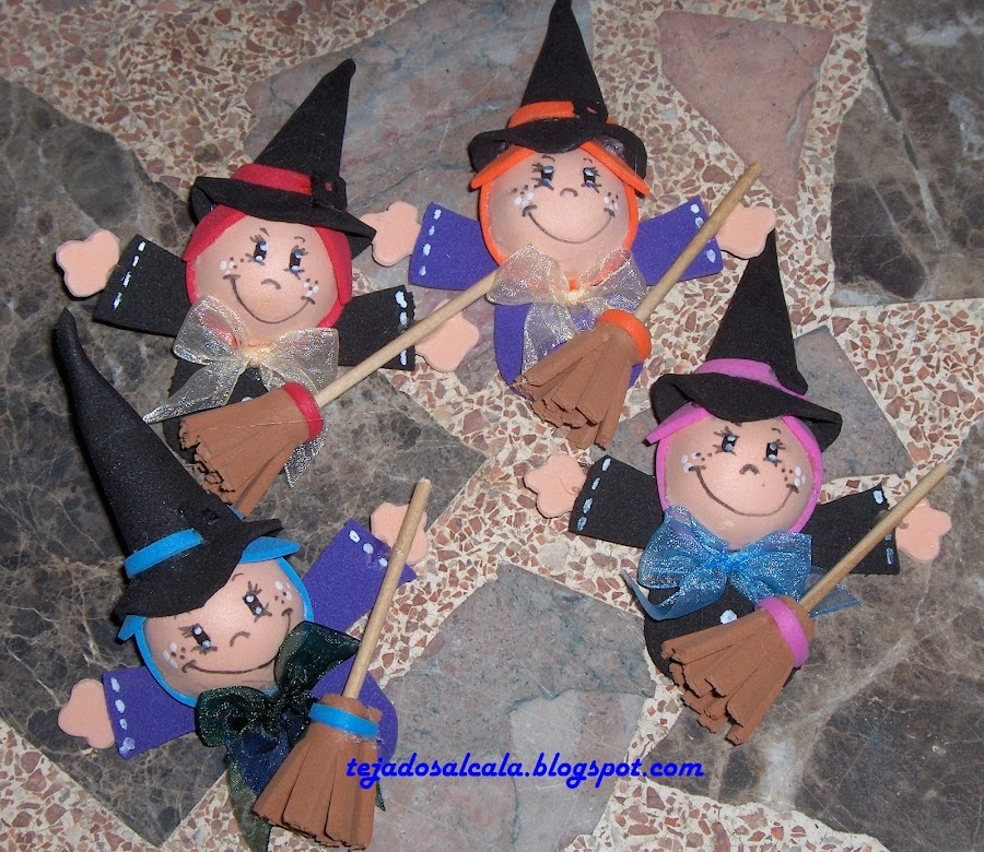 Unas brujitas en goma eva para preparar Halloween