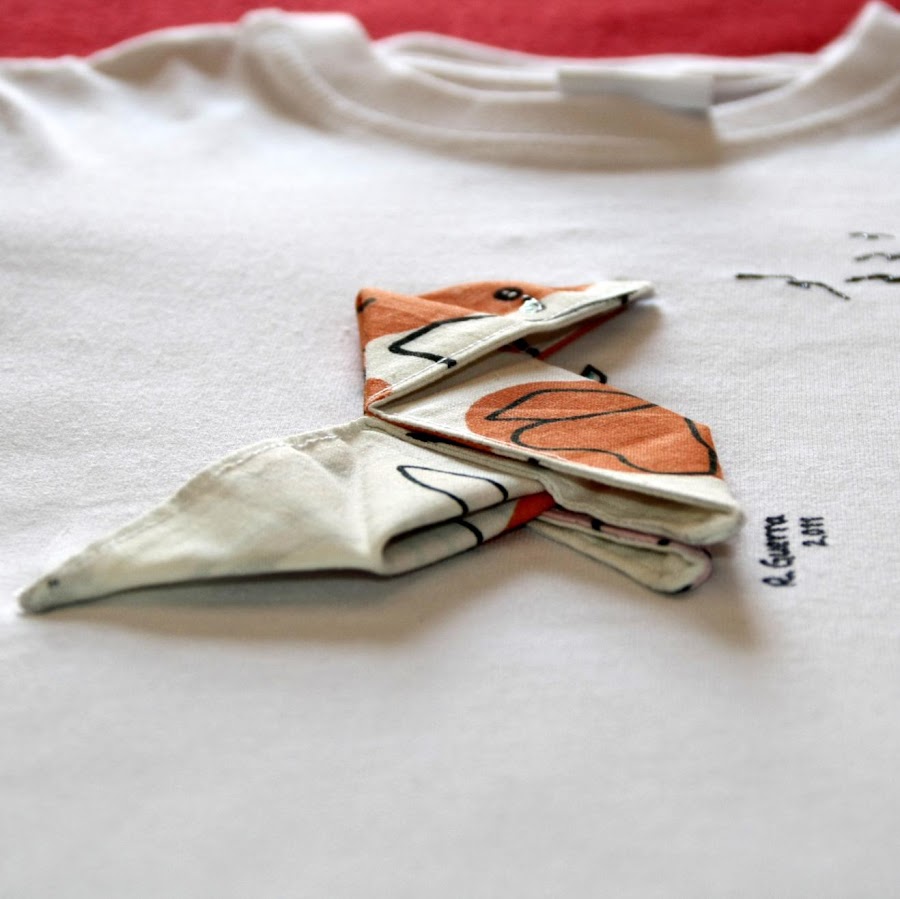 CAMISETA "QUIERO VOLAR..." DETALLE DE DIBUJO VISTA 3D DE PAJARITA "DE PAPEL"