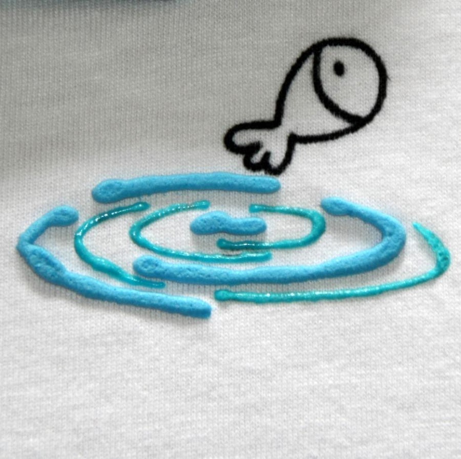 CAMISETA "HABÍA UNA VEZ UN BARQUITO CHIQUITITO..." DETALLE DE DIBUJO VISTA DE BARCO 3D DESDE ARRIBA VISTA DE BARCO 3D DESDE ABAJO DETALLE DE DIBUJO DE PEZ DETALLE DE CIELO ESTRELLADO