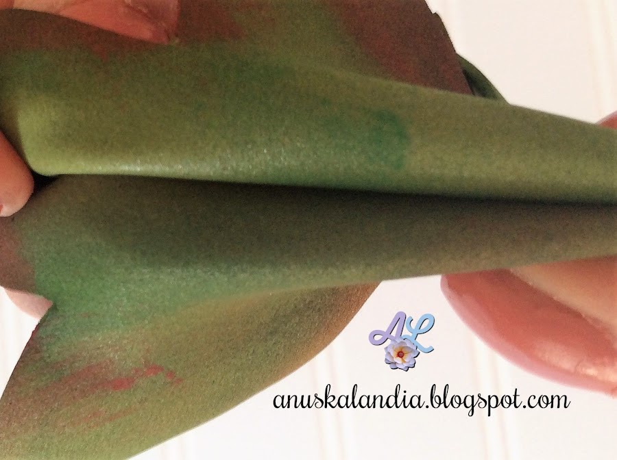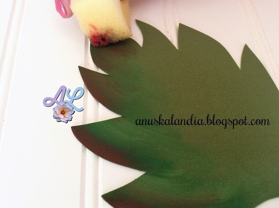 - Las hojas se pintan alrededor, dejando el color original de la goma eva al centro.