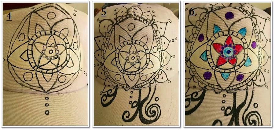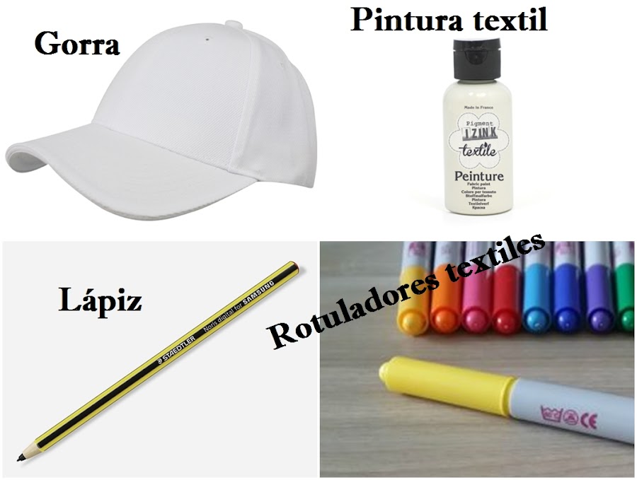 1. Si la gorra que vas a pintar tiene propaganda cómo la mía tápala con pintura textil del color de la gorra.