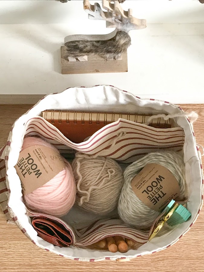 Llevaba años buscando la bolsa perfecta para mis bártulos de punto; he pasado por bolsas de tela colgadas al hombro, bolsas de plástico, bolsas plegadas.... pero a todas les encontraba una pega (que si eran muy pequeñas, que si no me cabían en el bolso, que si no tenían bolsillos...) así que me puse manos a la obra con una tela que también llevaba años comprada.