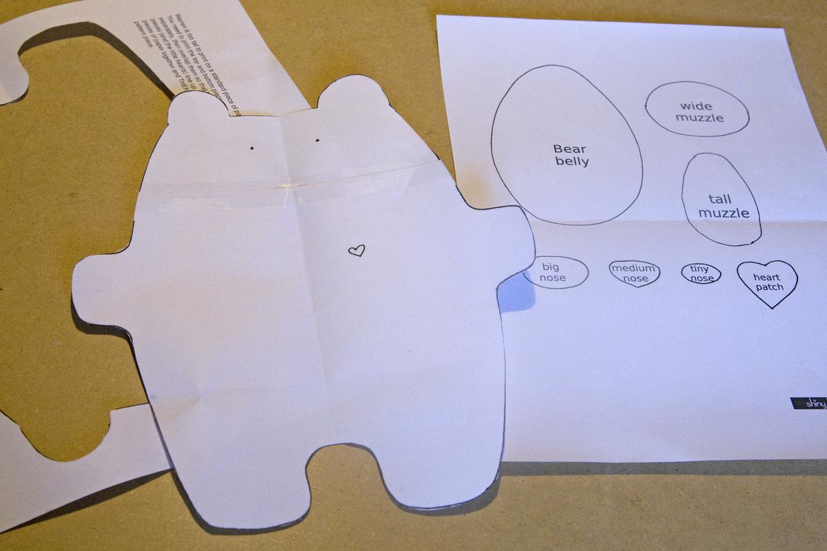 Descarga y recorta el patrón del osito. Para personalizarlo puedes elegir diferentes tamaños de hocicos y de narices.