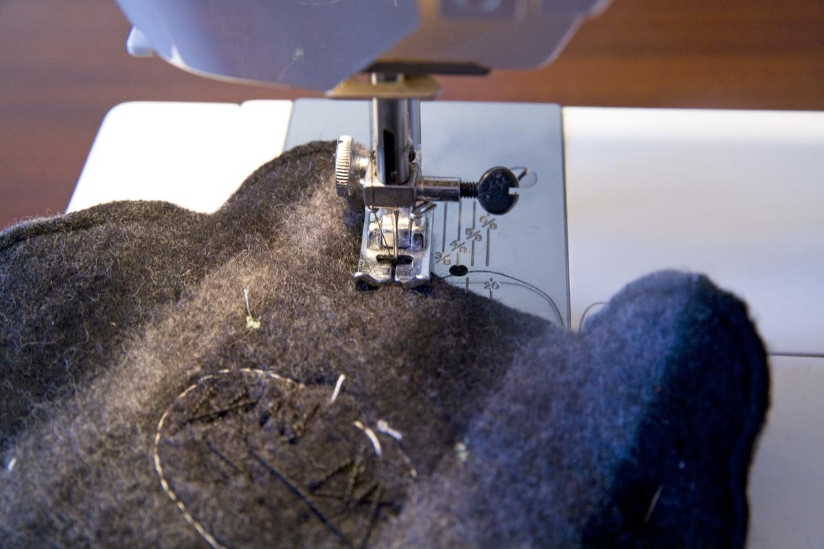 Da la vuelta a las dos partes del patrón y cóselas dejando una parte abierta para poder rellenar el muñeco.