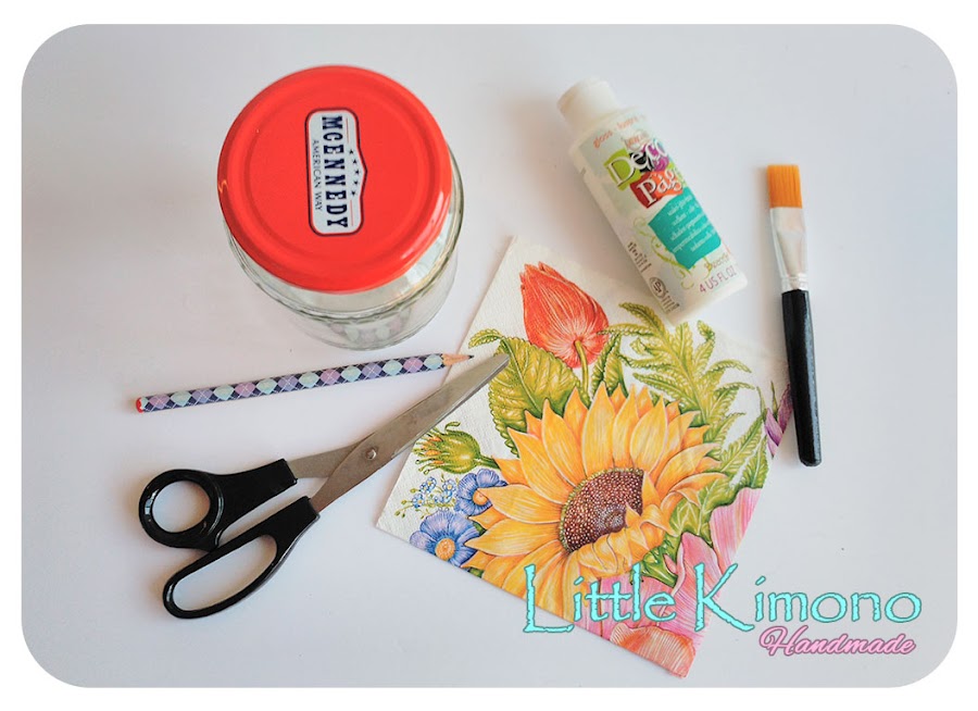 Usaremos botes de conserva para guardar hierbas aromáticas o algún material de manualidades por ejemplo, es muy sencillo de hacer, usando la técnica de decoupage.