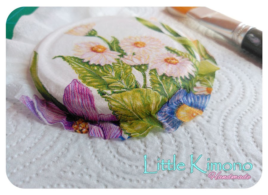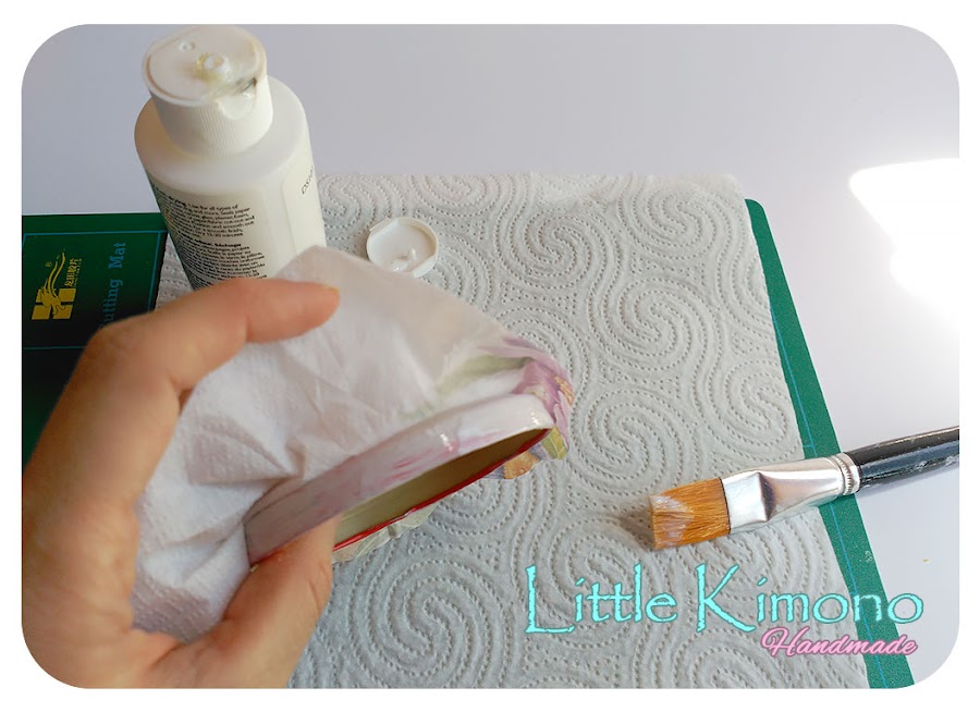 4. Damos una mano de cola para decoupage sobre la parte superior de la tapa...