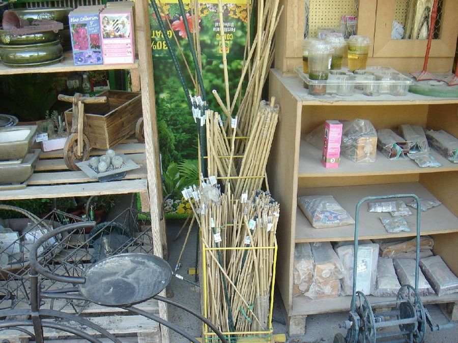 A falta de arroyo cercano con cañaveral, hemos obtenido la materia prima para hacer nuestra cometa en un sitio donde abundan las cañas: un vivero. La variedad que se encuentra allí es el bambú, un material muy liviano y de enorme resistencia, tanto que se utiliza como pilares de casas y mástil de barcos. Por menos de un euro, compramos suficientes cañas como para hacer tres cometas.