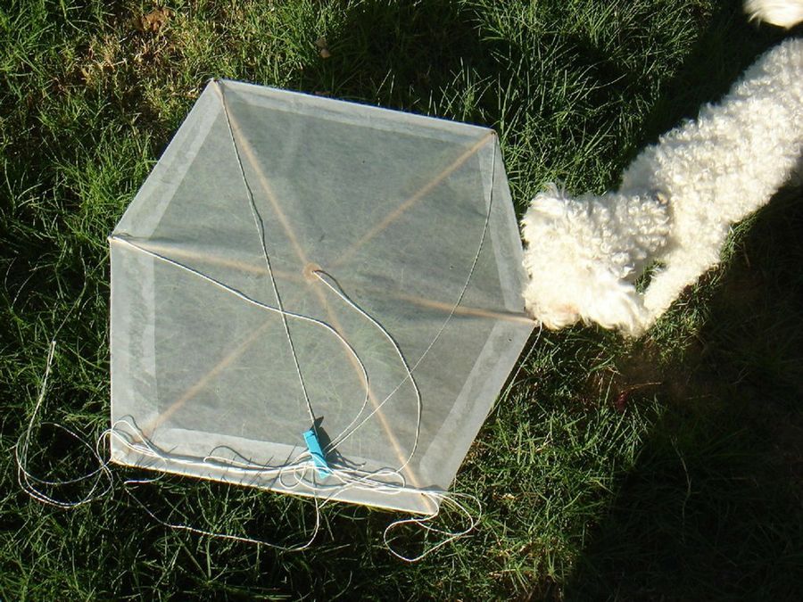 ¡Y por fin tenemos la cometa terminada! Sólo falta ponerle la cola, que será una cuerda de varios metros adornada con lazos de tela, y efectuar las pruebas de vuelo. Seguro que lo hace de maravilla, habiendo superado la exigente inspección de nuestro ayudante Coco.