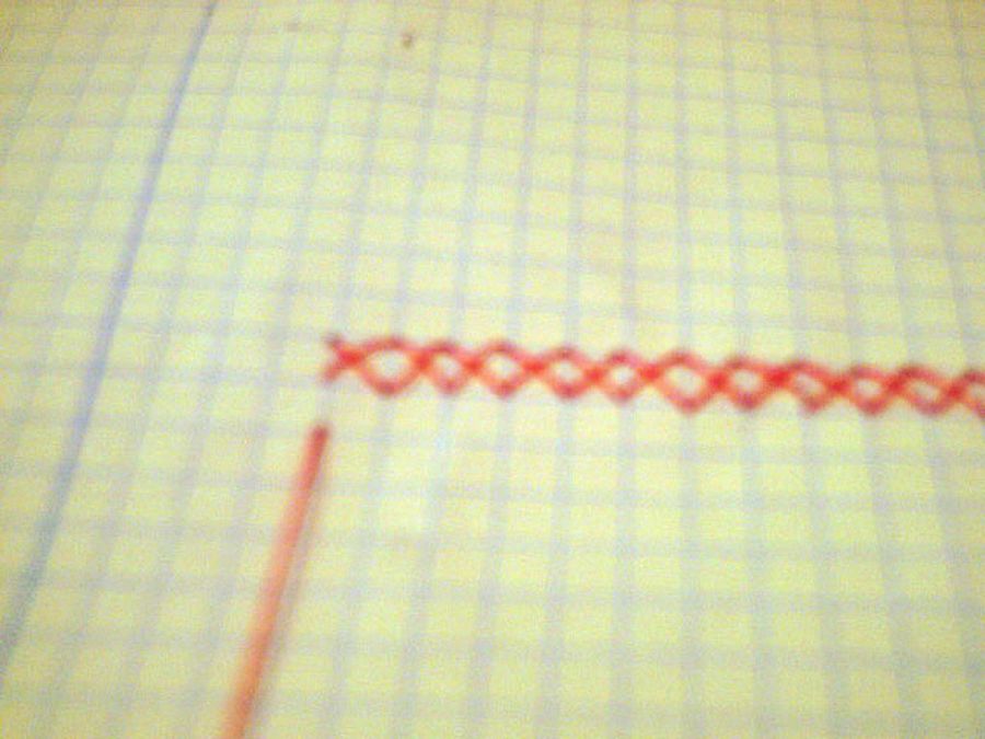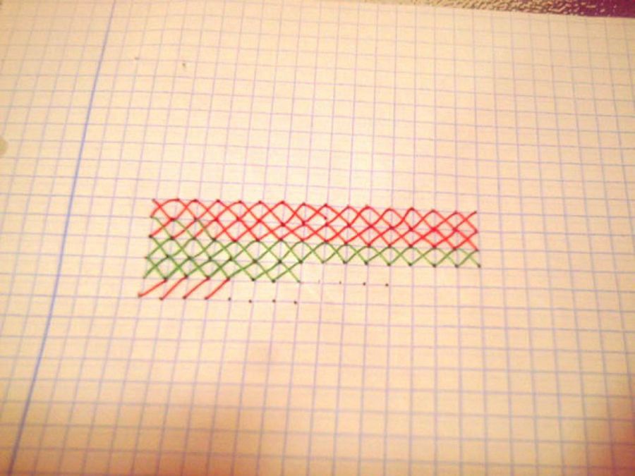 Como ya hemos terminado de hacer una fila, vamos a bajar a la siguiente. Pinchamos en el cuadro de abajo como al principio, en el lado izquierdo, para ir después al superior derecho y seguir haciendo diagonales. Continuamos hasta el final, y retrocedemos como antes.
