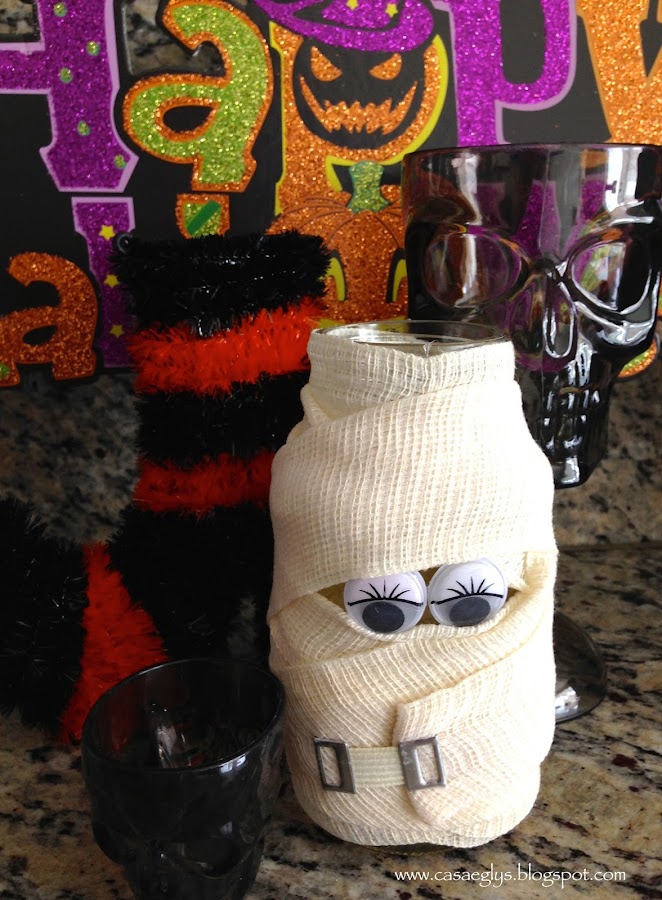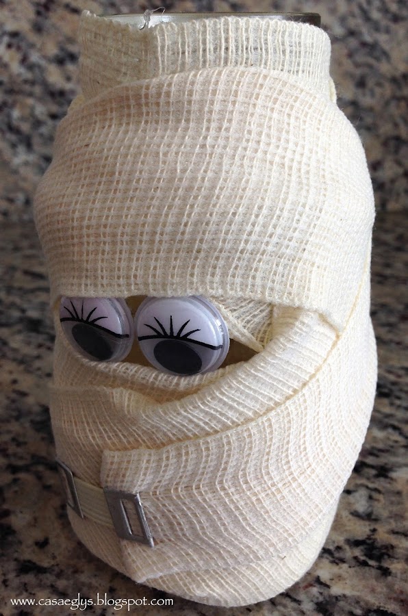 Y listo, ya tienes tu momia para decorar este Halloween. Es una actividad fácil de hacer con los hijos. Puedes hacer de diferentes tamaños y colocarles dulces dentro, o una vela de batería.