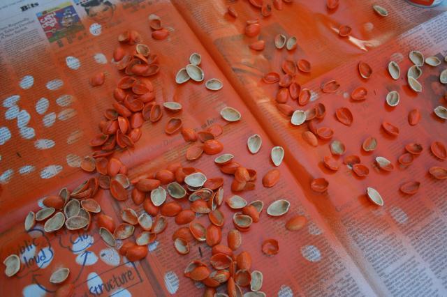2.- Coloca periódico sobre la mesa o en el piso, y luego coloca todas las cascaras de pistaches para pintarlos con pintura en spray.