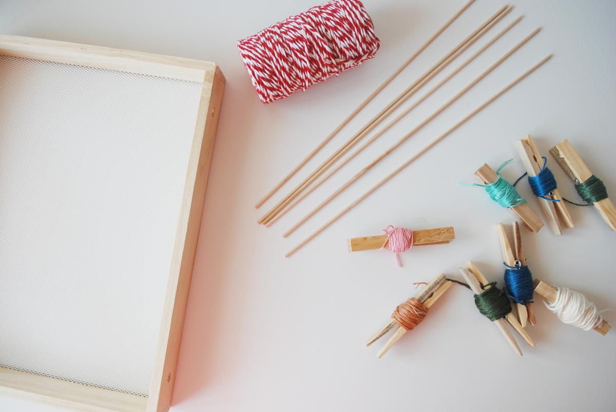 Por último necesitaremos baker twine o algún hilo un poco más grueso de lo normal, dos bolitas de madera y por supuesto nuestros hilos con las pinzas de madera, ya que he querido conservar el sistema pinza.