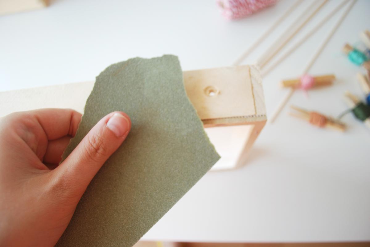 Lo primero que haremos será hacer dos agujeros en la base de nuestra caja. Con ayuda de una lija quitaremos las impurezas que puedan haber quedado.