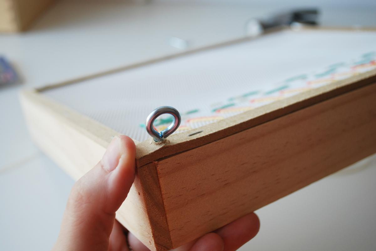 Colocaremos dos hembrillas por la parte de atrás para así poder colgarlo dónde queramos.