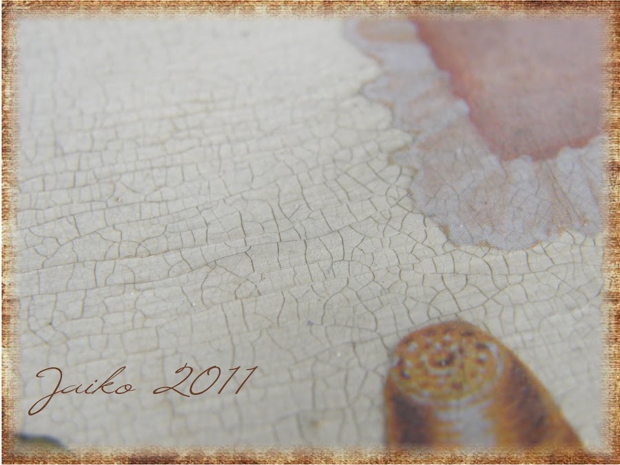 Una vez pegada la lámina lo he barnizado, y una vez seco el barniz fijador, le he aplicado craquelador, de esta forma queda una grieta finita, que a mi personalmente para poner encima de las imagenes me gusta más que la grande.