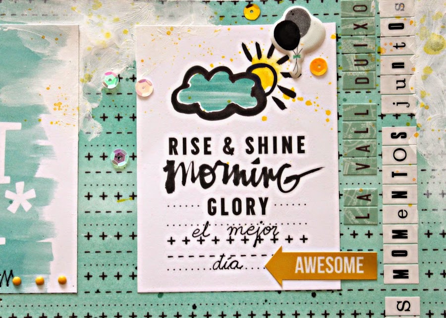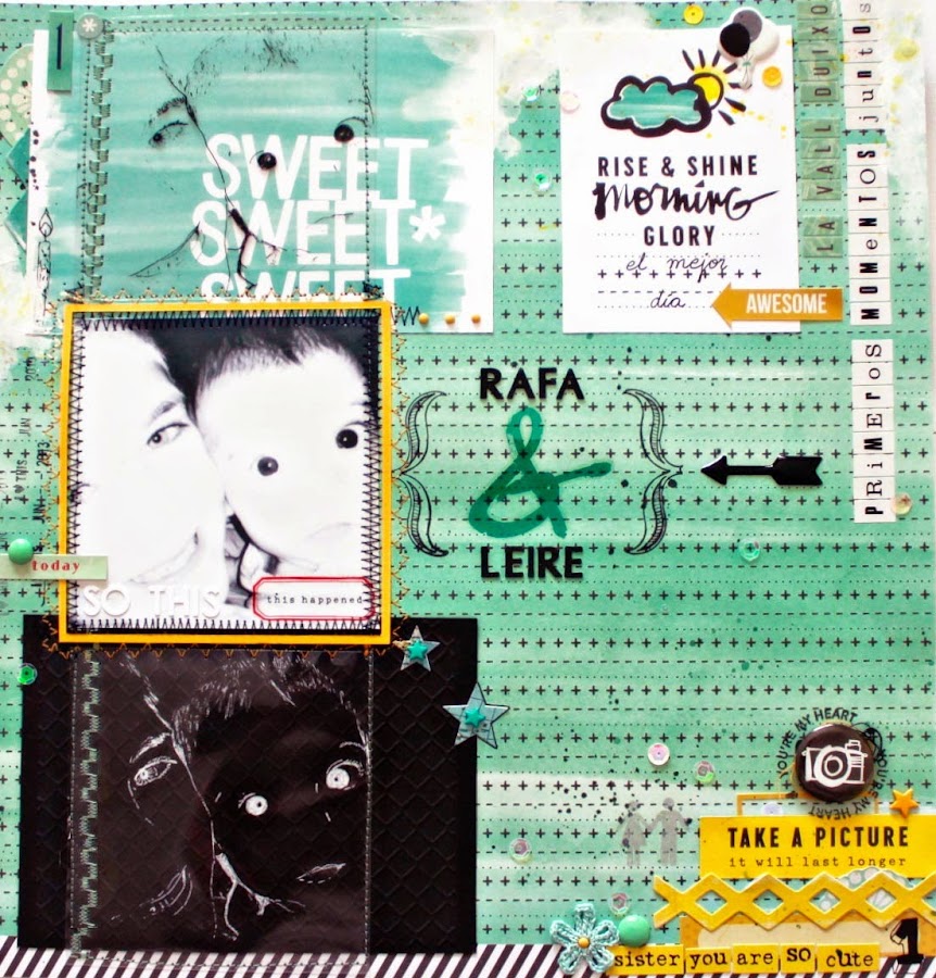 Como materiales entre otros podréis ver un detallito muy especial y delicado de croché de Elevado a N, y los fantásticos papeles y detalles de la colección "Plus One" de Amy Tangerine que podéis encontrar en Mummy Crafts.