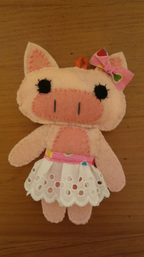 Le hice también una chanchita de fieltro rosita, aiiins no lo puse rabito, qué fallo!!