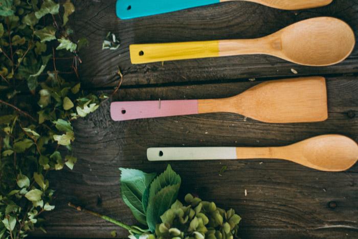 10. Cucharas madera color Dale un toque de color a tu cocina con este sencillo diy y unas cucharas de madera.