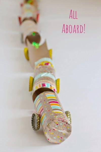 Tubos de cartón de papel higiénico, washi tape, unas chapas y... Chuuuu... chuuuuuu... viajeros al treeennn!!!.