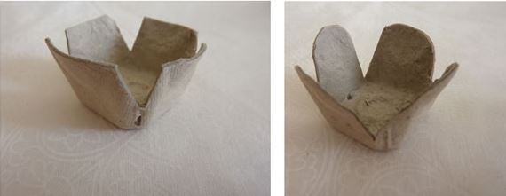 1.- Dependiendo de la cantidad de flores que quieras hacer, corta varias unidades de de copitos del cartón de huevo.
