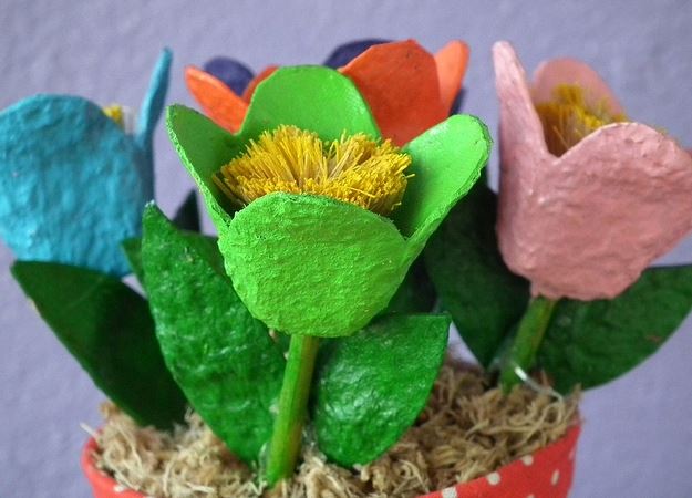 Flores con cartones de huevo