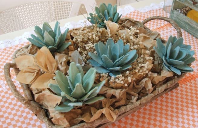 Arreglo de suculentas en tono rosa con cartones de huevo reciclados
