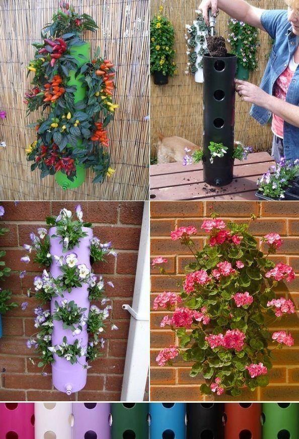 Los tubos de PVC pueden ser conseguidos en alguna ferretería y ser usados como floreros de varias plantas colgantes. Solo hazles agujeros y ve incorporándoles las plantitas.