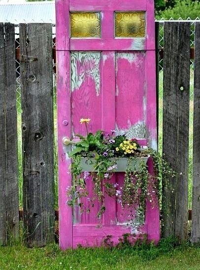 Si tienes una puerta que ya no quieras, no la tires, mejor utilízala para decorar tu jardín. Esta le dará un toque especial y servirá muy bien para que cuelgues tus maceteros.