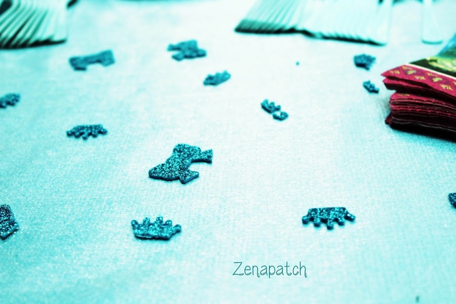 6.- Reutiliza el sobrante de la goma eva que usaste en el número!Como diría Arguiñano, "aquí no se tira nada!" Puedes utilizar los pedacitos que te sobren para recortar adornos para la mesa; yo utilicé algunos troqueles (perforadoras) y este fue el resultado