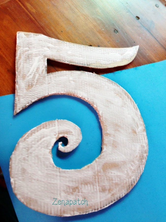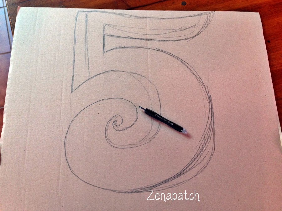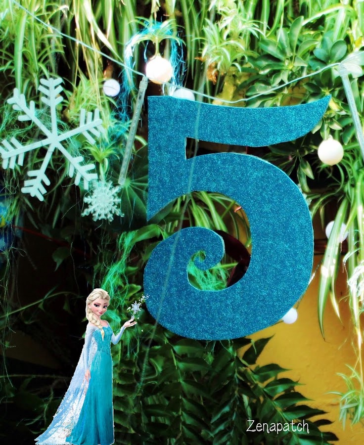Dibuja en el cartón el número, procurando que tenga una estética Frozen, si no eres muy apañada con el lápiz, también puedes imprimir el número utilizando la fuente que te dejé arriba, y copiarlo o calcarlo en el cartón.