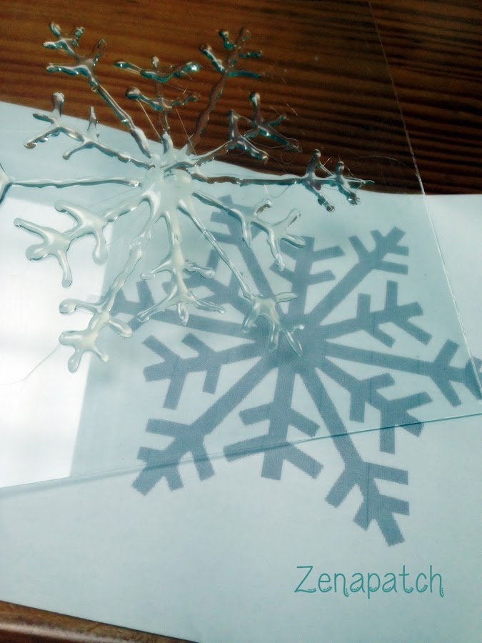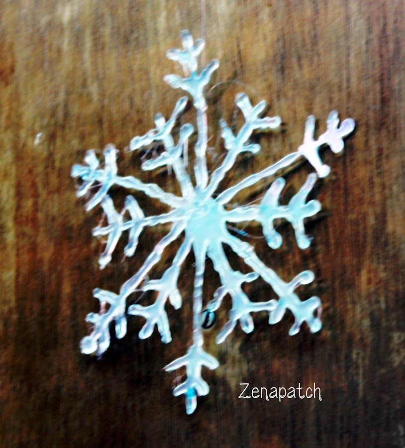 Espera unos segundos y vete despegando despacito tu copo, ya lo tienes! ¿ves qué fácil? para colgarlo, te recomiendo que uses nylon de pescar o hilo transparente, para que parezca que flota. (perdón por la calidad de la foto, con el corre corre... )