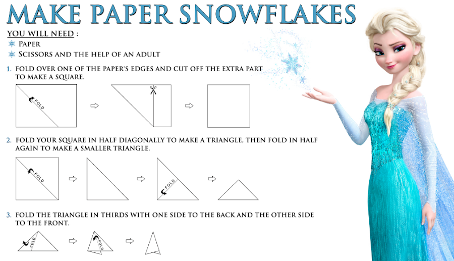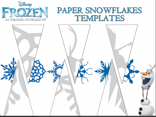 Puedes imprimir un copo que te guste o varios modelos y recortarlos, y también puedes seguir las instrucciones (en inglés) que te da la propia página de Disney, Reino Unido, aquí, o bien imprimirlos directamente desde aquí. Sólo tienes que doblar un folio normal y corriente como te enseñan. Corta el copo que te guste y úsalo como plantilla, sólo debes recortar las partes sombreadas, y te quedarán genial!