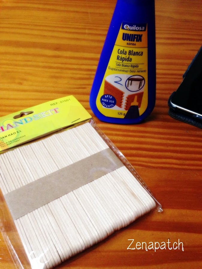 Palitos de madera para manualidades (en los chinos, unos 90 céntimos)