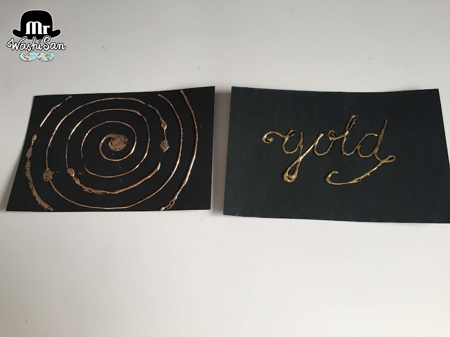 4. Para escribir y dibujar va muy bien un bolígrafo de pegamento como el de la marca Martha Stewart que hay que dejar secar una vez dibujado o escrito y cuando el pegamento cambia de color es el momento de aplicar el foil