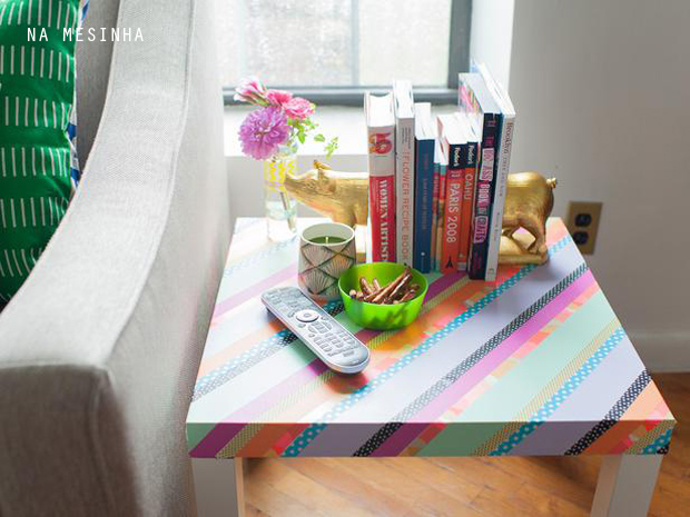 1. Dale un aire de los 70 a tu mesa de centro, con tiras de colores.