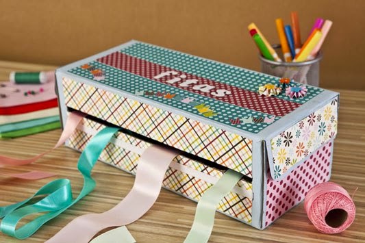 4. Si amas las manualidades, recicla una caja de carton y haz un organizador para tus cintas y botones.