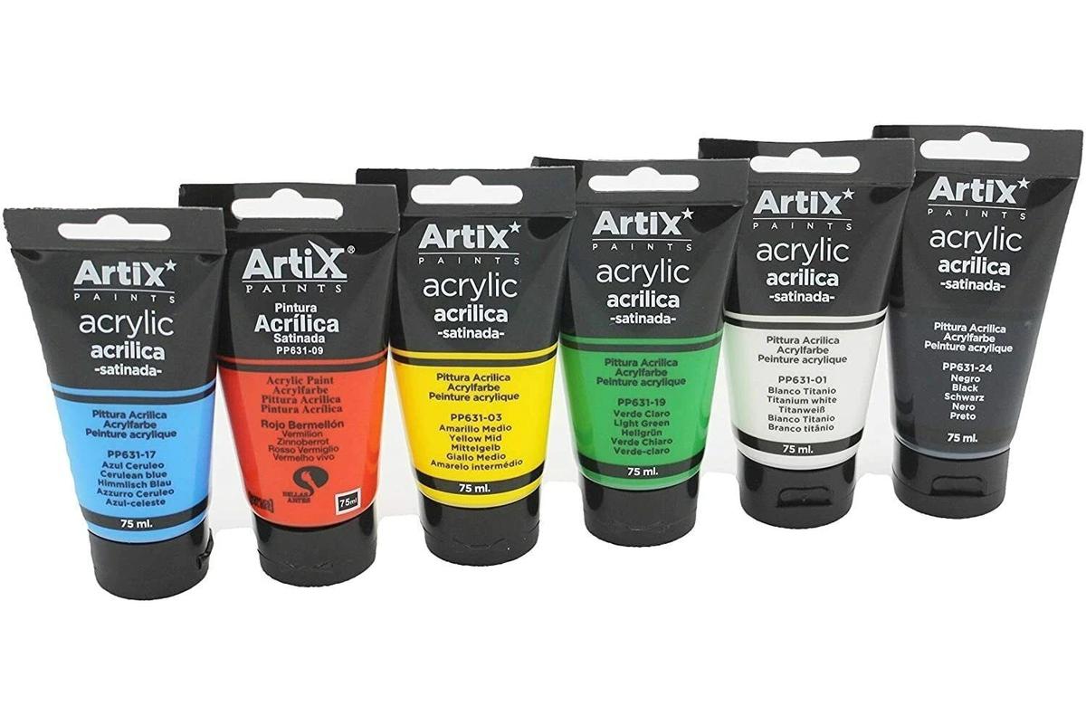 Compra los colores primarios y un bote grande de color blanco y otro de color negro, con esto ya podrás hacer una gran variedad de colores para tus manualidades.