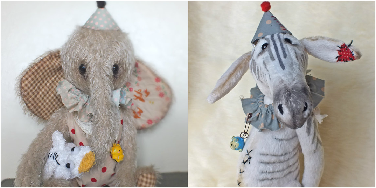 Hoy os traigo dos tiendas la primera situada en Inglaterra se llama A Curious whim se dedica a hacer osos, elefantes o cualquier animalito que se le ocurra, en forma de peluche, prima su originalidad, dándoles un estilo vintage y usado que los llena de un encanto y una personalidad únicos.
