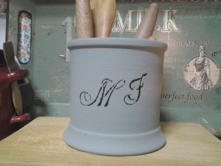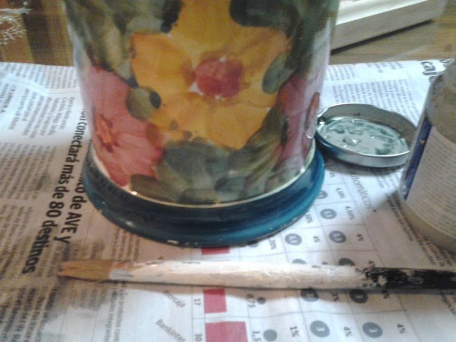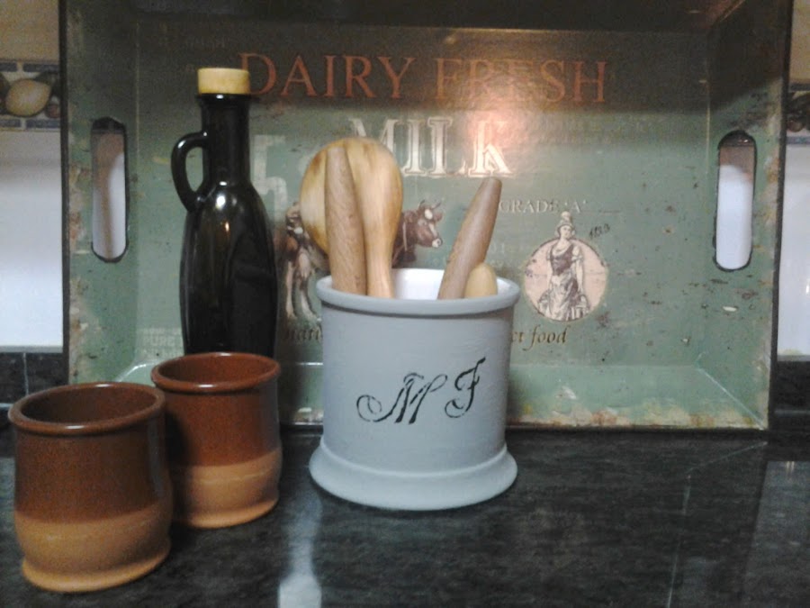 Tenía este bote de loza guardado en el sótano, lo compré cuando me case, y en ese momento me gustó, en el guardaba azucar, pero se me rompió la tapa que lo cubría y pensaba que lo había tirado, pero buscando otra cosa, como sabeis estoy renovando cositas, lo vi y enseguida sabía lo que quería hacer.