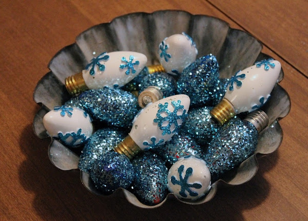 Esta otra idea con bombillas es genial Solo necesitaras pintura , purpurina y algún molde navideño... pero si quieres saber como hacerlo y hacerlo bien, en el blog myprojectsandfinds.blogspot.com lo encontrarás.
