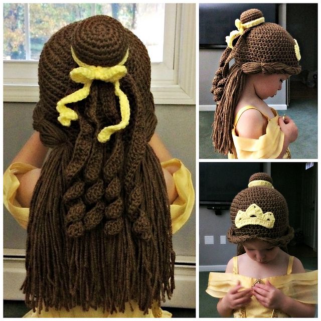 Hay pelucas de lana para todas las princesas Disney. Como esta de Bella: