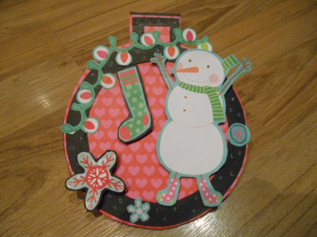 Una bolita para el árbol de Navidad con un simpático muñequito de nieve (en relieve con foam) supercontento por que se acerca la Naviduvi, con copitos de nieve y calcetín para los regalitos tambien en relieve y lucecitas de colores, con muuuucho amor!! ains ya queda una semanita menos, qué biennnn