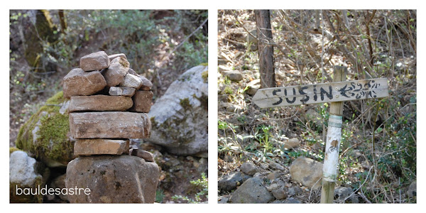 Desde allí la carretera se vuelve camino y unas pequeñas señales te indican dónde dejar el coche y empezar a caminar, pues a Susín hay que llegar caminando.